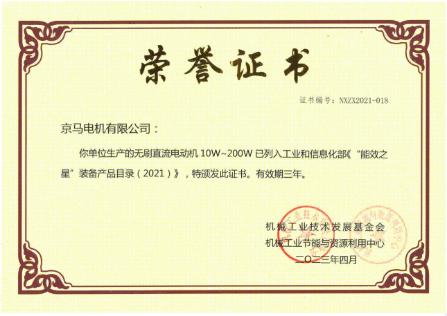 4月,京馬電機(jī)榮獲《國(guó)家“能效之星”裝備榮譽(yù)證書》。